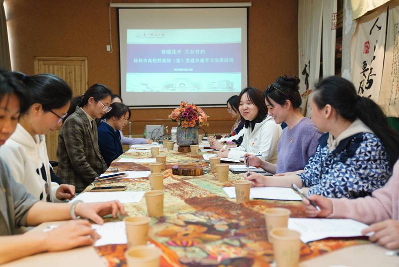 为深化桂林市高校档案馆交流合作,强化党建引领与业务协同,增进各高校档案工作者之间的情谊,3月13日,由广西师范大学档案馆主办的“春暖花开,兰台有约——桂林市高校档案馆党建共建暨工会联谊活动”在桂林市九号文创园顺利举行。来自桂林7所高校档案馆(室)的负责人、业务骨干及工会会员代表齐聚一堂,共话党建引领,共叙兰台情谊。本次活动以“党建共建+工会联谊”为主线,既有思想的深度碰撞,也有情感的温暖交流,充分展现了桂林高校档案人团结奋进的精神风貌。