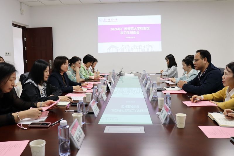 为进一步深化档案育人功能,推进馆院协同育人机制走深走实,档案馆与文学院/国际中文教育学院/新闻与传播学院(以下简称文学院)联合开展2023级秘书学专业本科生实习工作。4月7日下午,2026年实习生见面会在档案馆910会议室顺利召开。文学院党委书记邓志平一行带领该院2023级17名秘书学专业本科生参加见面会,档案馆负责人及实习指导老师共同参会。会议由档案馆馆长朱会华主持。